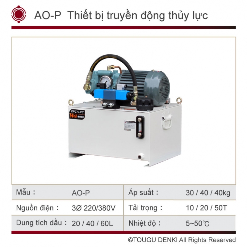 | Hệ thống thủy lực 3Φ AC 220V / 380V | |||